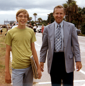 In the summer of 1971 I was very fortunate to be in Cocoa Beach to see the "Moon Walk parade". At the parade route's end, just off the 520 at A1A I noticed Jim Lovell signing autographs and speaking with some space fans. I desperately wanted to speak with a real astronaut and to perhaps get him to sign my Apollo scrapbook. I was really nervous but I wandered up to him and asked if he might sign my book. Not only did he autograph my scrapbook he also took the time to stand with me for a photo which my folks took. He was a great guy and one of my favorite astronauts.