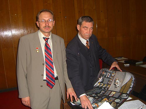 My poster makes its way to Russia. Ron Creel's Russian friends Serguei Matrossov and General Dovgan, the original driver of the first extra terrestrial Rover on a planetary body, Lunokhod 1 with a copy of my rover poster.